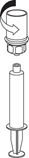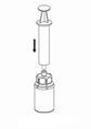 7. Luft in eine leere, sterile Spritze aufziehen. Die Produktflasche aufrecht halten, die Spritze mit dem Luer Lock Anschluss des «Mix2Vial» Set verbinden, indem man sie im Uhrzeigersinn aufschraubt und die Luft in die Produktflasche injiziert.