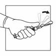 ·Die Nadel oberhalb des Flüssigkeitsspiegels zurückziehen und die Durchstechflasche 30 Sekunden lang kräftig schütteln. Die Suspension sollte milchig und homogen aussehen (Abb. C). Überprüfen, dass kein Pulver in der Flasche verbleibt, und wenn nötig, die Suspension fortsetzen, bis das Pulver vollständig verschwunden ist. Achtung: Die Mischung darf nicht durch mehrmaliges Aufziehen und Entleeren der Spritze erfolgen! ·Das Produkt sollte nun innerhalb von 2 Minuten injiziert werden.
