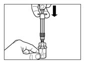 Die Verschlusskappe der Fertigspritze, die das Lösungsmittel enthält, entfernen und die Spritze auf den Adapter der Durchstechflasche schrauben.