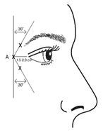 Bei der gleichzeitigen Behandlung mit Glabellafalten beträgt die Dosis 24 Allergan-Einheiten für Krähenfüsse und 20 Allergan-Einheiten für Glabellafalten (siehe Applikationsanleitung für Glabellafalten und Abbildung 1), sodass die Gesamtdosis 44 Allergan-Einheiten und das Gesamtvolumen 1,1 ml beträgt.