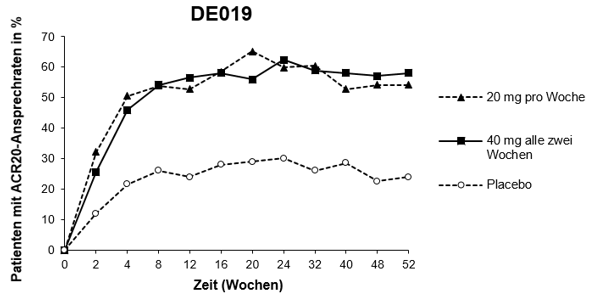 Die Fortsetzung der Therapie nach 16 Wochen sollte bei Patienten, die innerhalb dieser Zeitspanne nicht ansprechen, abgebrochen werden.