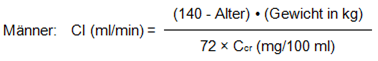 Wenn nur die Serum-Kreatininwerte (Ccr) bekannt sind, kann die Kreatinin-Clearance (Cl) mit der folgenden Formel abgeschätzt werden: