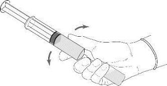 1.Der Kolben wird am Gummistopfen befestigt, indem er im Uhrzeigersinn bis zum Anschlag in die Spritze gedreht wird. 2.Die Schutzkappe wird von der Spritze entfernt und für den späteren Gebrauch aufbewahrt. Eine zur Rekonstitution geeignete Nadel wird auf die Spritze aufgeschraubt. Die Spritze wird senkrecht gehalten und durch vorsichtiges Drücken des Kolbens wird die Luft aus der Spritze entfernt