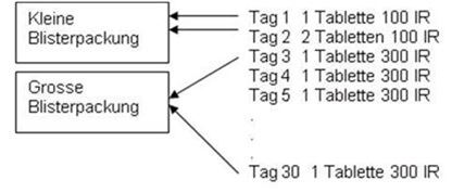 PackungenEinleitungsbehandlung: 3 Tabletten à 100 IR und 28 Tabletten à 300 IR [A]