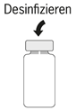 2. Äusseren Anteil des Gummistopfens der Durchstechflasche vor Einführen einer sterilen Nadel desinfizieren.