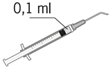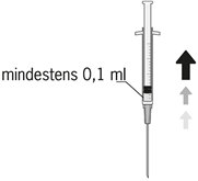 8. Luftblasen sorgfältig durch Klopfen aus der Spritze entfernen und den Flüssigkeitsspiegel auf die 0,1 ml-Marke einstellen. Die Spritze ist jetzt für die Injektion bereit.