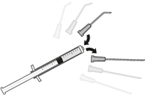 7. Die 5-Micrometer-Filternadel von der Spitze abziehen und geeignete Vorderkammerkanüle auf die Spitze aufsetzen.