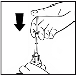 10.Injizieren Sie langsam das gesamte Lösungsmittel in die Durchstechflasche mit dem Pulver, indem Sie den Spritzenstempel nach unten drücken.