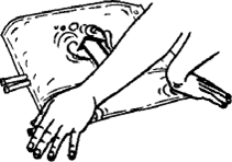 3. Mit beiden Händen auf die kleine Kammer des Beutels drücken, bis sich die Peelnaht vollständig entlang ihrer gesamten Länge geöffnet hat.