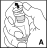 3.Entfernen Sie die Schutzkappe von der Produktflasche (A) und reinigen Sie den Gummistopfen mit einem Alkoholtupfer (oder verwenden Sie einen Desinfektionsspray).