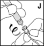 15.Verbinden Sie das Injektionsbesteck mit einer Rechtsdrehung mit der Spritze und vermeiden Sie Bluteintritt in die Spritze (J).