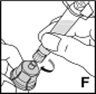 8.Verbinden Sie nun durch eine Drehung im Uhrzeigersinn die Spritze mit dem Gewinde des Adapters (F).