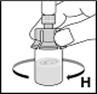 10.Lösen Sie das Pulver mit kreisenden Bewegungen (H). Nicht schütteln! Stellen Sie sicher, dass das Pulver vollständig gelöst ist. Verwenden Sie keine Lösungen mit sichtbaren Partikeln oder Trübungen.