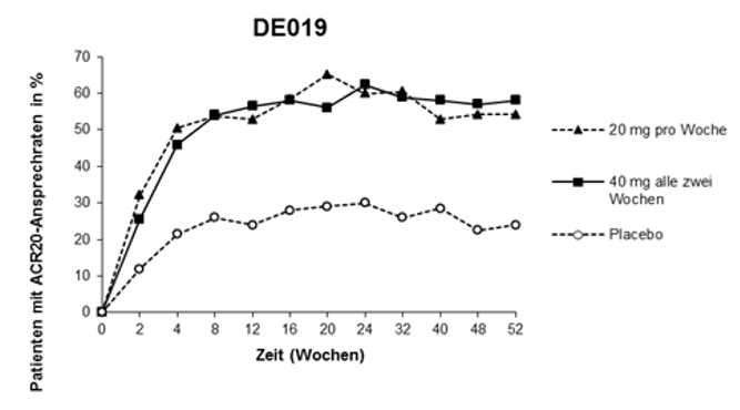 Die Fortsetzung der Therapie nach 16 Wochen sollte bei Patienten, die innerhalb dieser Zeitspanne nicht ansprechen, abgebrochen werden.