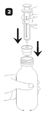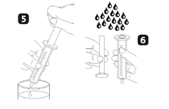 Entleeren Sie den Inhalt der Dosierpipette in ein Glas mit Wasser, indem Sie den Kolben bis zum Anschlag nach unten drücken (Abb. 5). Trinken Sie das Glas vollständig aus. Altenativ kann die Lösung auch direkt unverdünnt eingenommen werden.
