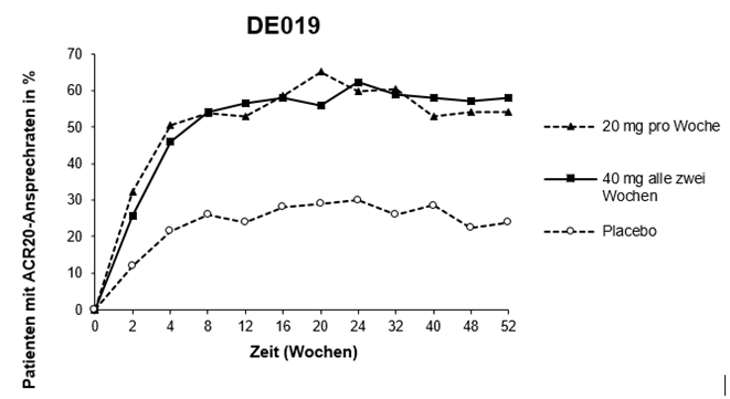 Die Fortsetzung der Therapie nach 16 Wochen sollte bei Patienten, die innerhalb dieser Zeitspanne nicht ansprechen, abgebrochen werden.