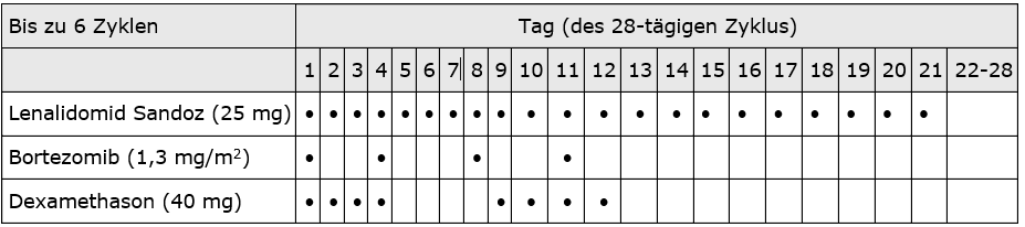 ·Initiale Therapie: Lenalidomid Sandoz in Kombination mit Bortezomib und Dexamethason