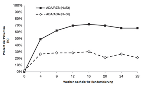 ADA/ADA: Patienten, die ursprünglich zu Adalimumab randomisiert und mit Adalimumab weiterbehandelt wurden