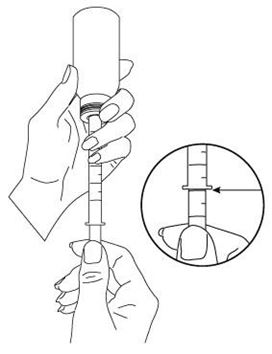 Die Flasche muss vor dem Gebrauch kräftig geschüttelt werden. Für die Dosierung ist der Packung eine Spritze beigefügt. Diese enthält eine Graduierung von 1 bis 5 ml. Dies erlaubt, die Dosierung individuell anzupassen je nach Konstitution des Kindes und je nach Verschreibungsmöglichkeiten.
