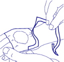 2.Von einem der beiliegenden TegadermTM-Verbände die mittlere Abziehfolie entfernen.