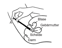2. Applikator mit Tablette vorsichtig möglichst tief in die Scheide einführen (am besten in Rückenlage).