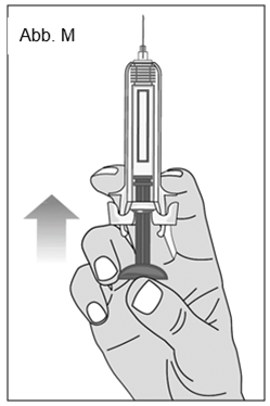 Drücken Sie den Kolben langsam nach oben, um die gesamte Luft zu entfernen, wie es Ihnen von einer medizinischen Fachperson gezeigt wurde. (Abb. M).