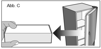 Nehmen Sie die Schachtel mit der Mircera Fertigspritze vorsichtig aus dem Kühlschrank. Lassen Sie die Spritze und die Nadel in der Schachtel, um sie vor Licht zu schützen, und lassen Sie sie mindestens 30 Minuten lang ruhen, bis sie Raumtemperatur erreicht hat (Abb. C). ·Wenn das Arzneimittel bei der Injektion nicht Raumtemperatur hat, kann die Injektion unangenehm sein, und es kann schwierig sein, den Kolben zu drücken. ·Erwärmen Sie die Spritze nicht auf andere Weise.