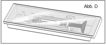 Öffnen Sie die Schachtel und nehmen Sie die Kunststoffschale mit der Mircera Fertigspritze heraus, ohne die Schutzfolie abzuziehen (Abb. D).