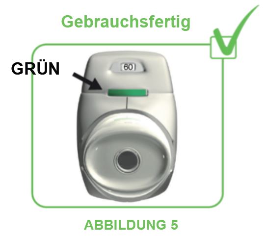 ·Das grüne Kontrollfenster zeigt an, dass Ihr Arzneimittel für die Inhalation bereit ist.