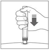 3a. Auswahl der Injektionsstelle: ·Die empfohlene Stelle ist der Unterbauch, jedoch nicht der Bereich innerhalb von 5 cm rund um den Nabel. ·Wählen Sie für die Injektion jedes Mal eine andere Stelle. ·Injizieren Sie das Arzneimittel nicht in Bereiche mit empfindlicher, verletzter, geröteter, schuppender oder verhärteter Haut. Vermeiden Sie Bereiche mit Narben oder Dehnungsstreifen.