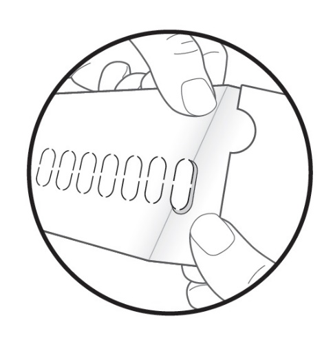 Schritt 4: Klappen Sie die Blisterkarte auf (siehe Abbildung D). Ein Streifen der Blisterpackung = 14 Hartkapseln = 28 Behandlungstage