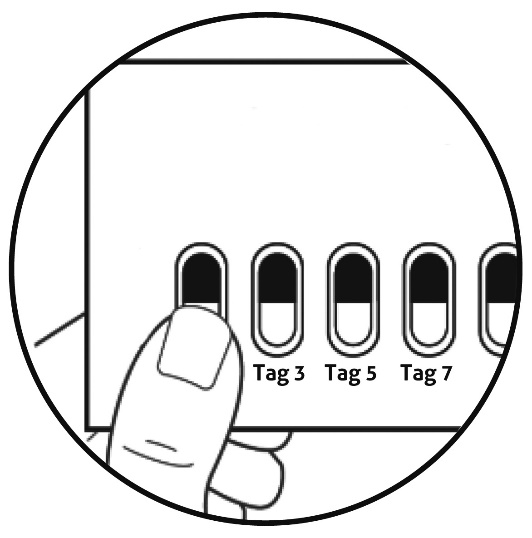 Schritt 2: Halten Sie die violette Markierung auf der linken Seite der Schachtel mit Ihrem Daumen gedrückt (siehe Abbildung B) und fahren Sie mit Schritt 3 fort.
