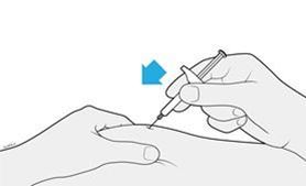Stechen Sie die Nadel in die zusammengedrückte Haut.