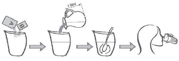 Sofern vom Arzt bzw. von der Ärztin nichts anderes verordnet, besteht eine Darmvorbereitung aus der Verabreichung des Inhalts von 4 Sachets A und 4 Sachets B, der zuvor in zwei Litern Wasser gelöst wurde (eine Packung). Der Inhalt von je 2 Sachets A und 2 Sachets B wird jeweils in 1 Liter Wasser gelöst.