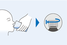 29. Drücken Sie den Kolben langsam bis ganz nach vorn. Achten Sie darauf, dass der Patient bzw. die Patientin das Arzneimittel schluckt.