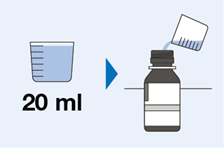 10. Giessen Sie 20 ml Trinkwasser in den Messbecher. Überprüfen Sie, ob sich genau 20 ml im Messbecher befinden, indem Sie ihn auf eine ebene Fläche stellen.