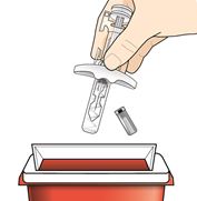 Entsorgung von TEZSPIRE Schritt 10 – Entsorgen Sie die gebrauchte Fertigspritze sicher
