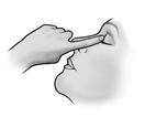 3.Beugen Sie den Kopf leicht nach hinten und halten Sie die gekippte Tropfflasche über das Auge.