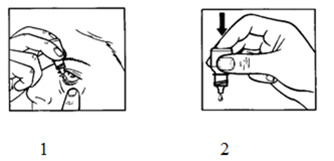 ·Beugen Sie den Kopf zurück. Ziehen Sie das Augenlid mit sauberem Finger nach unten, bis ein Spalt zwischen Lid und Auge entsteht. Tropfen Sie hier ein (Abbildung 1).