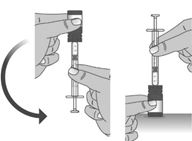 Bevor Sie die nächste Dosis verabreichen, setzen Sie die Spritze wieder zusammen, indem Sie den Kolben in den Spritzenkörper schieben (siehe Abbildung T).