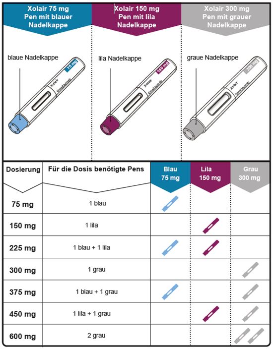Diese Packungsbeilage wurde im Februar 2024 letztmals durch die Arzneimittelbehörde (Swissmedic) geprüft.GEBRAUCHSANWEISUNG FÜR XOLAIR FERTIGPEN