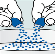 Schritt 3: ·Ziehen Sie die Kapsel auseinander, sodass der Inhalt in die Schüssel mit der Nahrung mit weicher Konsistenz fällt. ·Tippen Sie vorsichtig auf die Kapsel, um sicherzustellen, dass alle Pellets rausfallen. ·Wiederholen Sie den letzten Schritt, wenn die Dosis mehr als eine Kapsel erfordert.