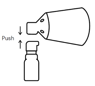 Die Packung von Fynzur enthält 2 separate Komponenten: eine Sprühflasche mit einer fest angebrachten Dosierpumpe und einen Konus. Diese Komponenten müssen vor der ersten Verwendung zusammengesetzt werden.